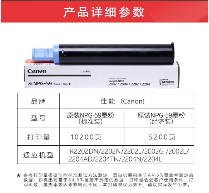 佳能(Canon)NPG-59 BK原裝黑色墨粉(適用于iR2202/2002/2204/2206系列/iR2425) 自營(yíng)